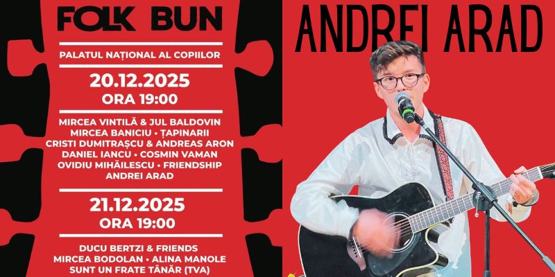Îi invităm cu drag pe toți prietenii și cunoscuții din comunitatea Terra Gloria care au posibilitatea să ajungă la București să fie alături de Andrei Arad pe 20 decembrie ora 19.00 și să se bucure de două seri dedicate folkului românesc.